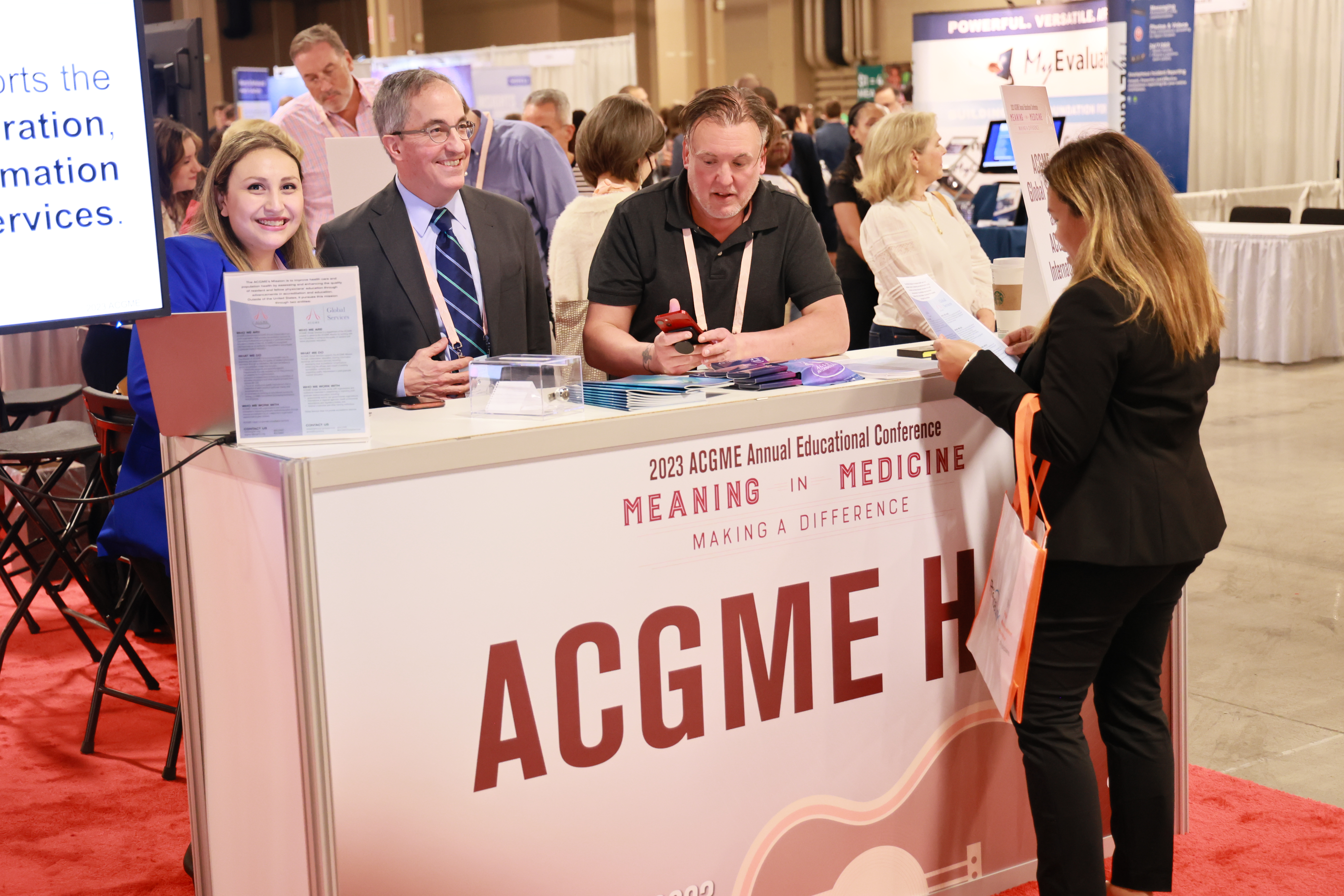 - Marvin R. Dunn Welcoming Poster Reception and Exhibitor Kick-Off, beginning at 5:30 p.m., offers a venue to network with thousands of attendees, speak with researchers and innovators at their poster displays, visit with the many exhibitors, and connect with numerous ACGME departments and initiatives in the ACGME Hub—including the joint booth for ACGME-I and ACGME Global Services. The ACGME Hub will be open whenever the Exhibit Hall is open, so please come by to ask questions or say hello!